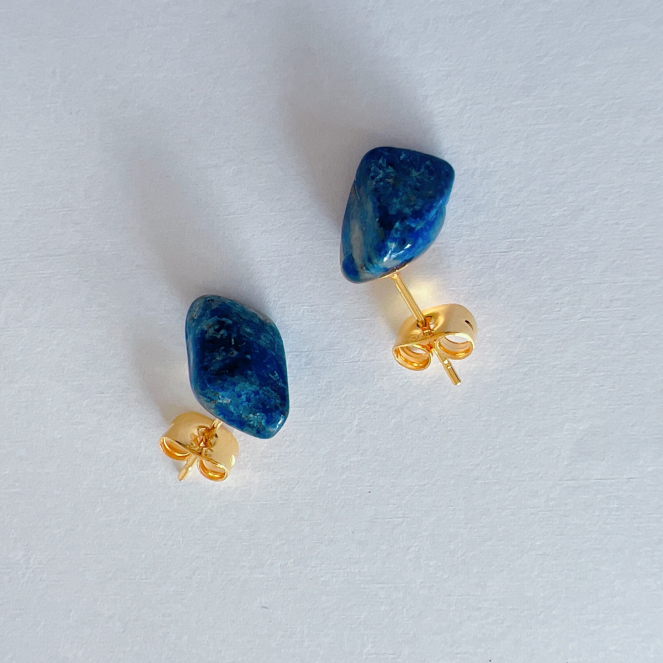 天然石ラピスラズリの一粒ピアス(アレルギー対応のサージカルステンレス316L)※着色なし