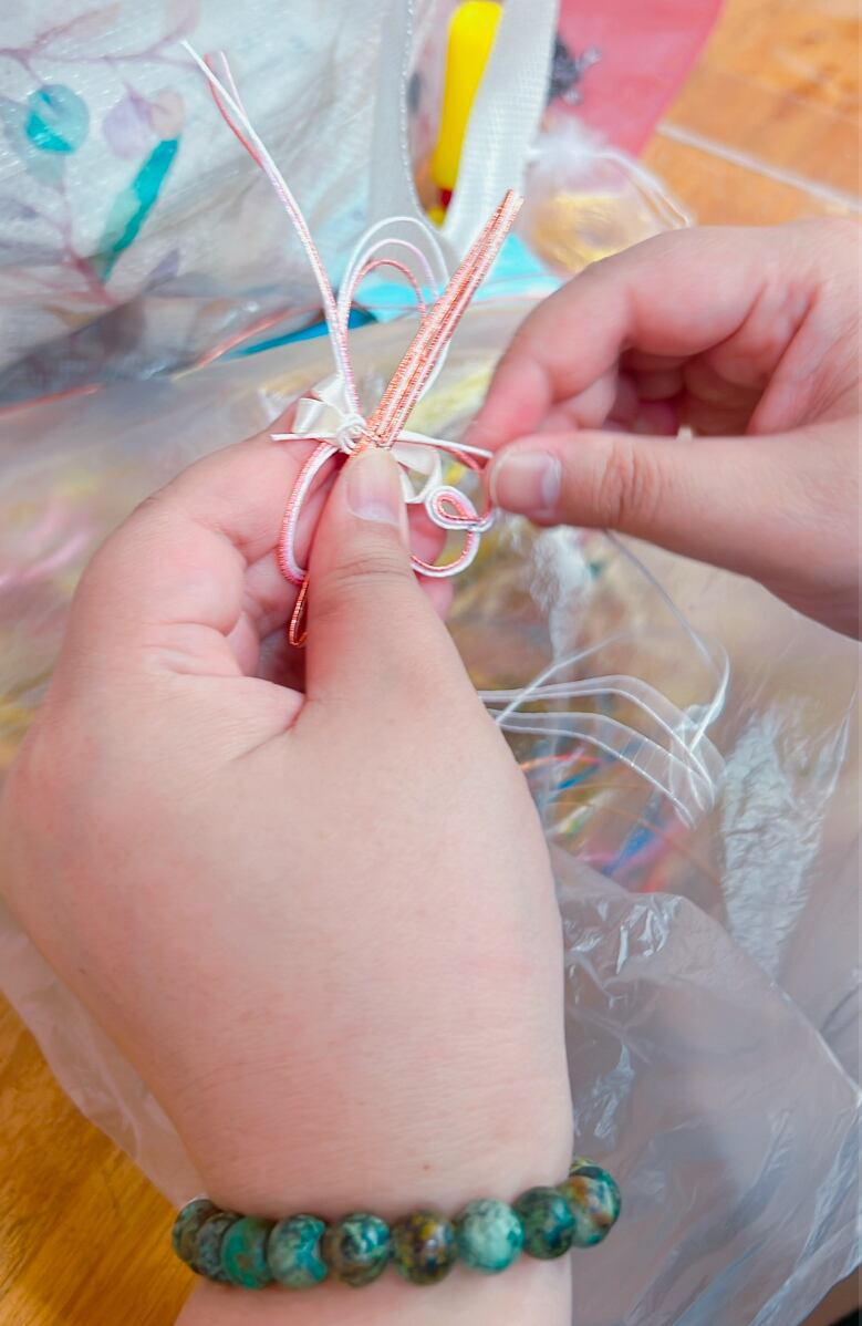 とても縁起が良く、見た目も華やかで、たくさんの良い意味が込められた梅結びの水引作品。