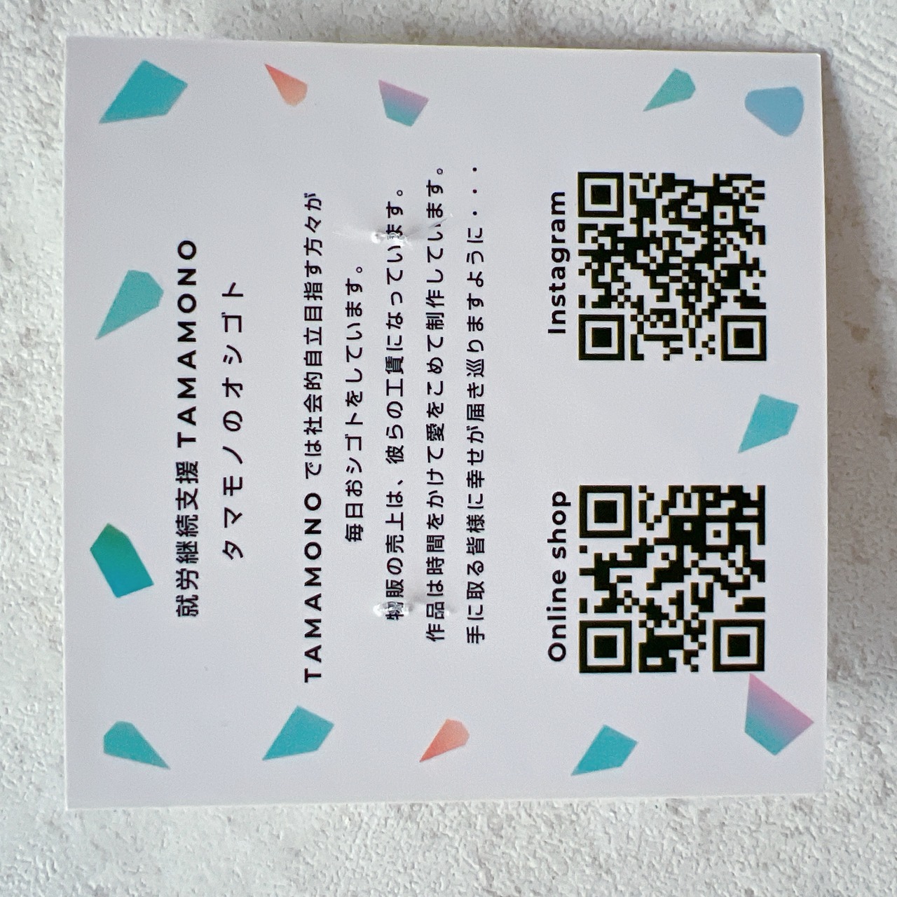 【就労継続支援TAMAMONOについて】